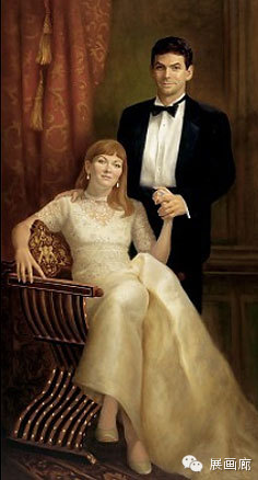 一对白发苍苍的老夫妇象他们新婚时一样款款深情,不同的是在他们每一根银白的发丝上都记述了无尽的往事。用这样一幅肖像油画来纪念他们的金婚或钻石婚更具独特的意义 。
