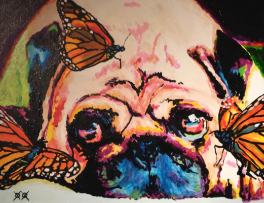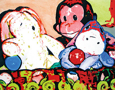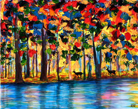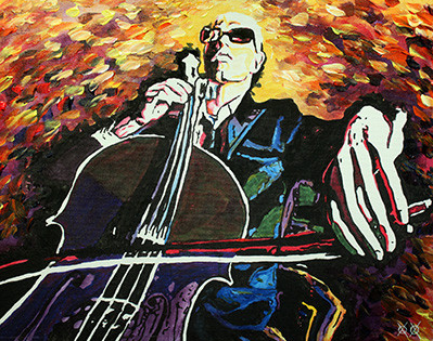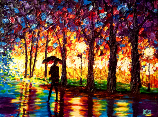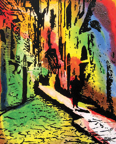 他用纹理漆作画.. 这样就可以摸得出来自己都画了什么。一切都是靠触觉来完成,调色也是一样。 他说不同的颜料会有不同的手感,靠感觉就可以知道自己大概调出了什么样的色彩。他的作品令人惊叹,给人留下深刻印象,他对艺术的爱超越了一切,也战胜了自己,屹立在艺术之林