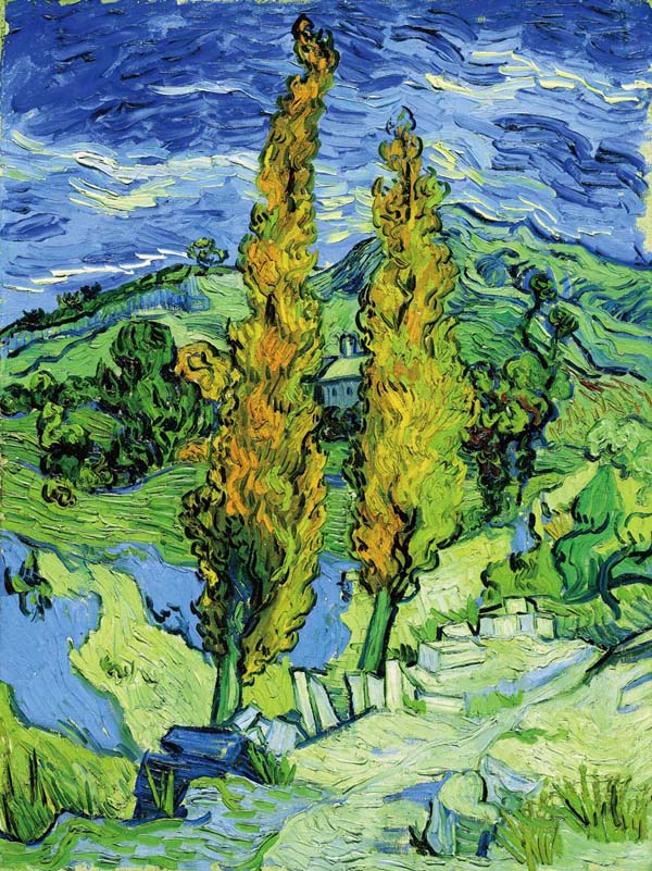 梵高的作品,有《星夜》、《向日葵》与《有乌鸦的麦田》等,已跻身于全球最著名、广为人知与珍贵的艺术作品的行列。1890年7月29日,因精神疾病的困扰,曾割掉左耳,后在法国瓦兹河饮弹自杀,时年37岁。