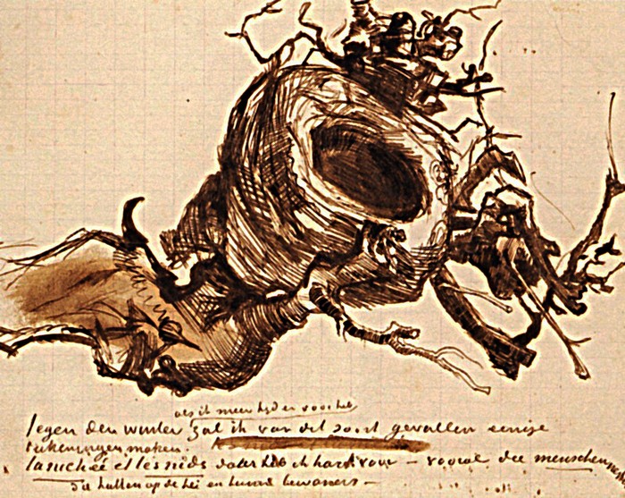 当我在写作的时候,我常常情不自禁地在纸上随手画上一些素描。在进行素描的时候,我会想到一些热情洋溢的句子。今天早上,天上乌云密布,有一些荆棘小树丛,它们算不上别致的风景,可在我看来却是如此生动。
