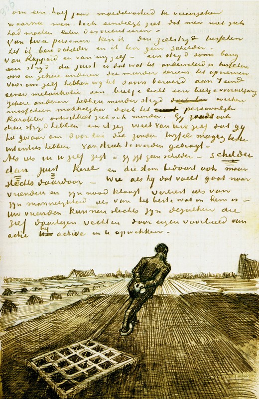 提奥在信中写到:“我不知道该怎样去克服困难。”这句话于我,真是心有戚戚焉。在很多方面,比如经济上,艺术本身,或者生活问题上,我都存在着这个问题。好兄弟,任何人都有烦恼的、伤心的、痛苦的时候,唉,如果我们的画能够卖出去多好!