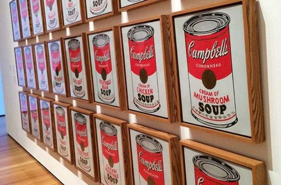 1962年,安迪霍沃尔在创作这个系列时,他根据当时市面上能够买到的32种口味的坎贝尔汤罐头创作了这32幅丝网版画。然而,艺术家并没有留下任何说明,这些版画应该按照某种顺序摆放。于是,在今天的纽约现代艺术博物馆(MoMA),这32张作品是按照罐头口味的字母顺序来摆放的。
