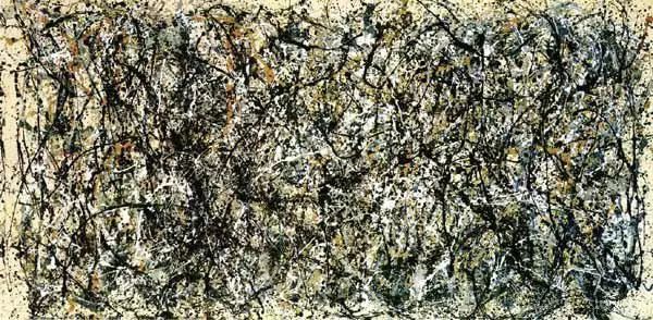 抽象表现主义绘画大师杰克逊·波洛克以他独特的“滴画法”闻名于世。他喜欢把巨大的画布平铺于地面,然后把颜料一层层的滴在画布上。在创作这幅作品时,艺术家使用了许多非常规的工具,例如棒子、小刀和毛巾等把颜料滴溅在画布上。
